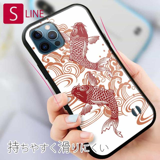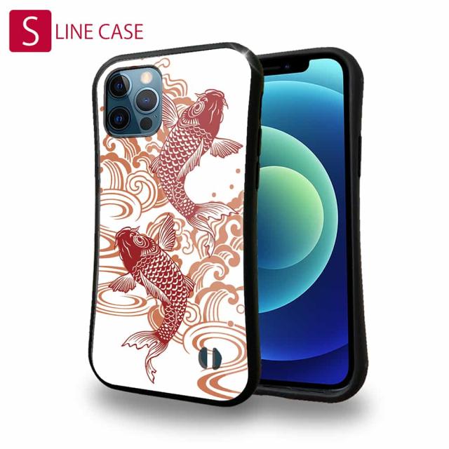 S-LINE ケース iPhone13 mini iPhone13 Pro Max iPhone12 Pro iPhone11 Pro iPhoneXs iPhoneXR Xperia 5 III Xperia 10 III Pixel 5a AQUOS sense6 釣り 魚 ルアー タトゥー風昇り鯉 レッド&ホワイト