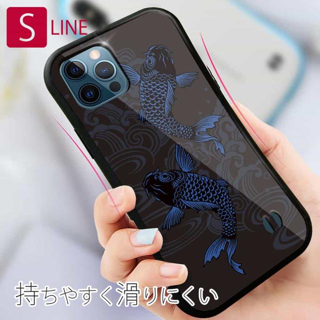 S-LINE ケース iPhone13 mini iPhone13 Pro Max iPhone12 Pro iPhone11 Pro iPhoneXs iPhoneXR Xperia 5 III Xperia 10 III Pixel 5a AQUOS sense6 釣り 魚 ルアー タトゥー風昇り鯉 ブルー&ブラック