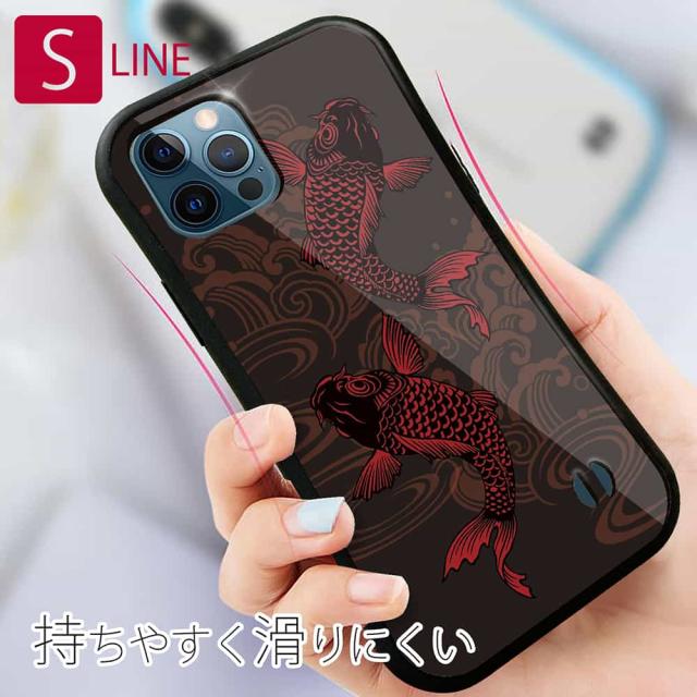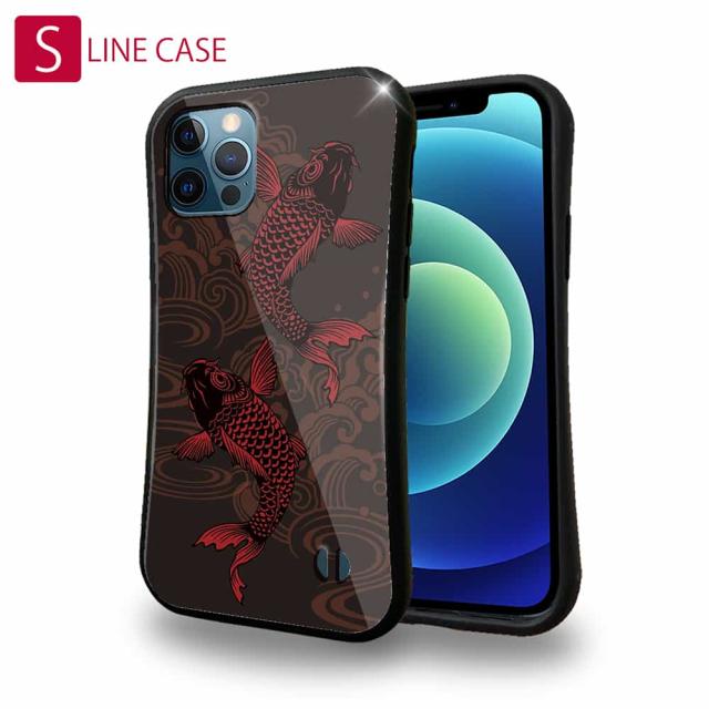 S-LINE ケース iPhone13 mini iPhone13 Pro Max iPhone12 Pro iPhone11 Pro iPhoneXs iPhoneXR Xperia 5 III Xperia 10 III Pixel 5a AQUOS sense6 釣り 魚 ルアー タトゥー風昇り鯉 レッド&ブラック