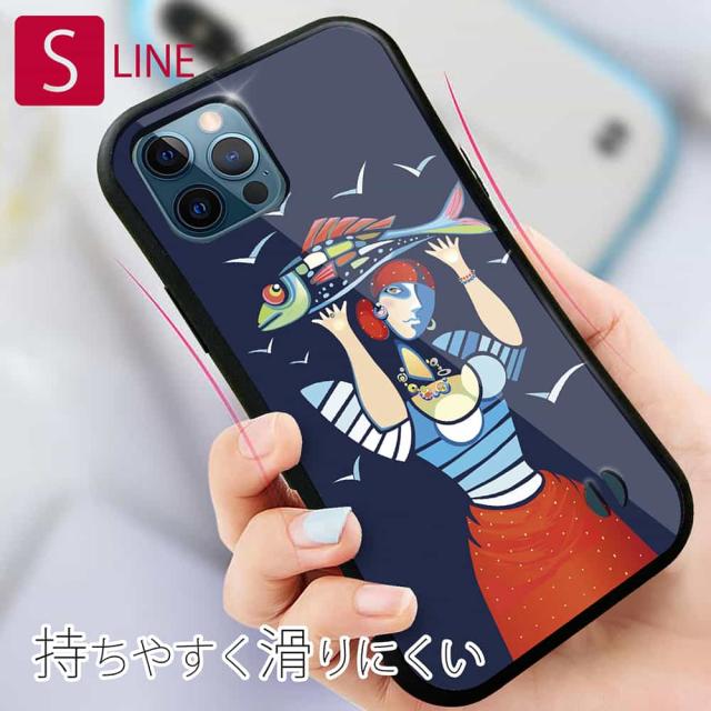 S-LINE ケース iPhone13 mini iPhone13 Pro Max iPhone12 Pro iPhone11 Pro iPhoneXs iPhoneXR Xperia 5 III Xperia 10 III Pixel 5a AQUOS sense6 釣り 魚 ルアー 魚を手にするイパネマの娘
