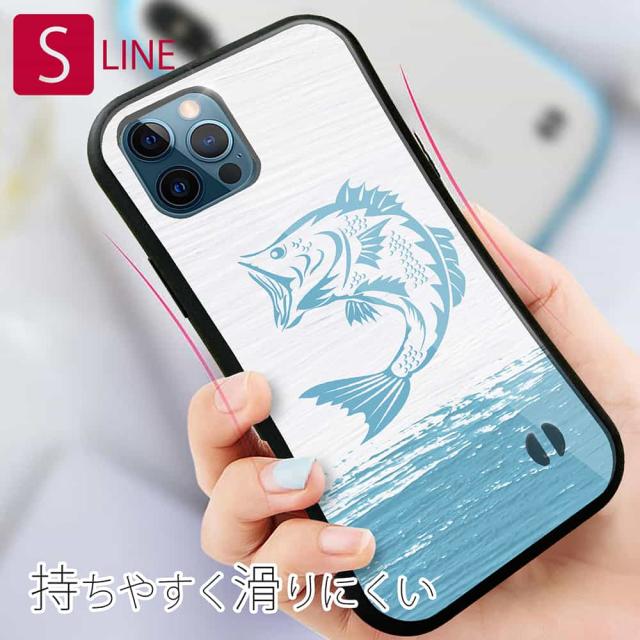 S-LINE ケース iPhone13 mini iPhone13 Pro Max iPhone12 Pro iPhone11 Pro iPhoneXs iPhoneXR Xperia 5 III Xperia 10 III Pixel 5a AQUOS sense6 釣り 魚 ルアー ブラックバスのイラスト 木目調