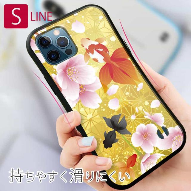 S-LINE ケース iPhone13 mini iPhone13 Pro Max iPhone12 Pro iPhone11 Pro iPhoneXs iPhoneXR Xperia 5 III Xperia 10 III Pixel 5a AQUOS sense6 釣り 魚 ルアー 金魚と金屏風