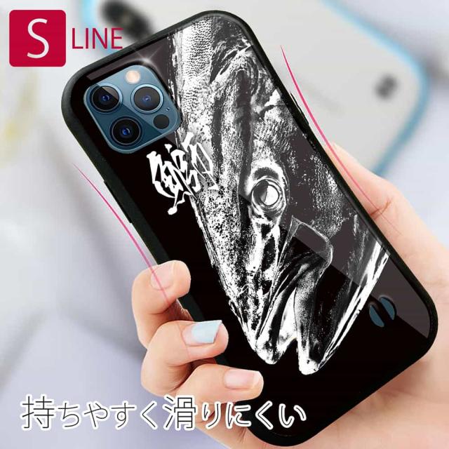 S-LINE ケース iPhone13 mini iPhone13 Pro Max iPhone12 Pro iPhone11 Pro iPhoneXs iPhoneXR Xperia 5 III Xperia 10 III Pixel 5a AQUOS sense6 釣り 魚 ルアー 鰤(ブリ) 墨絵風 黒