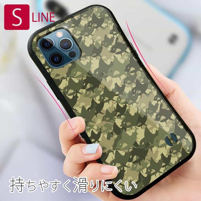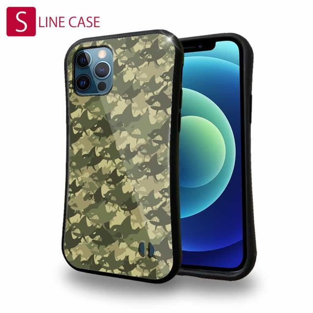 S-LINE ケース iPhone13 mini iPhone13 Pro Max iPhone12 Pro iPhone11 Pro iPhoneXs iPhoneXR Xperia 5 III Xperia 10 III Pixel 5a AQUOS sense6 釣り 魚 ルアー サメ(SHARK) 迷彩柄 ブラウンカラー