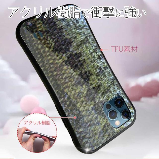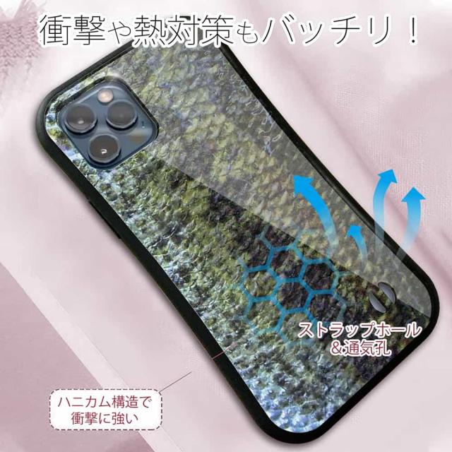 | 商品説明 | 落下や衝撃に強いTPUケース+綺麗に印刷できるアクリル板でプリント。ワニや蛇の皮を使ったバッグやケースがあるのだから、魚の鱗のデザインがあっていいのでは? そんな発想からデザインされたブラックバスの鱗デザイン。スマホがバスにチェンジします! |