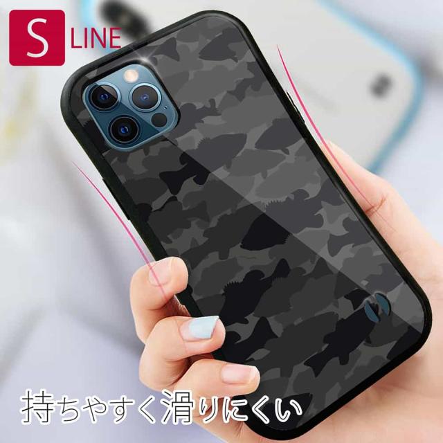 S-LINE ケース iPhone13 mini iPhone13 Pro Max iPhone12 Pro iPhone11 Pro iPhoneXs iPhoneXR Xperia 5 III Xperia 10 III Pixel 5a AQUOS sense6 釣り 魚 ルアー ブラックバス 迷彩大柄 ビターブラック