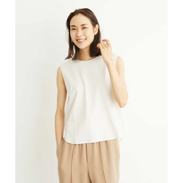 ミッシェルクラン/【洗える】コットンノースリーブカットソー