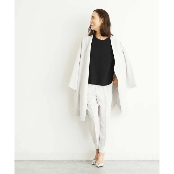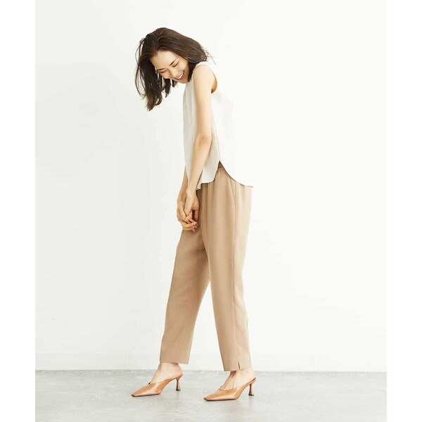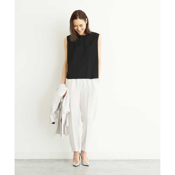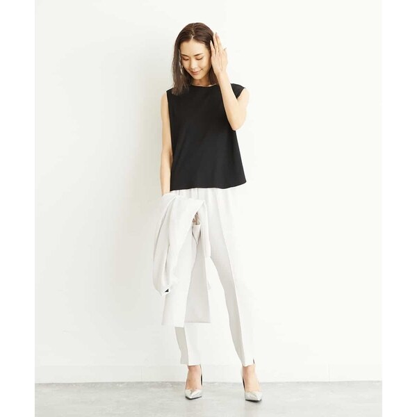 定番のノースリーブカットソー。衿ぐりや裾にステッチがないクリーンな見え感のカットソー。サイドスリットを入れ、ラウンドテールの裾がデザインポイント。アウトしてもポイントになりますし、前だけボトムインも叶えます。40サイズは店舗限定展開です。