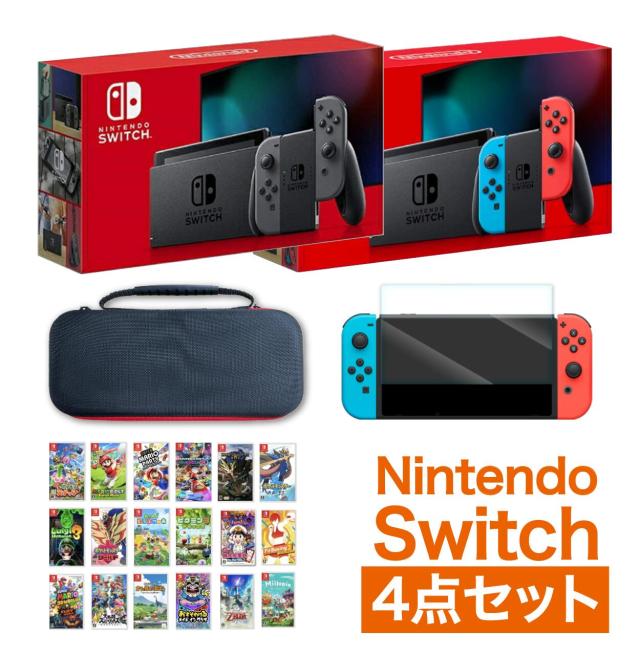 【福袋 4点セット】スイッチ ネオンorグレー セット + 保護ケース + ガラスフィルム + お好きなソフト Nintendo Switch 任天堂