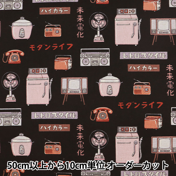 【数量5から】 生地 『綿麻キャンバス レトロジャパン 家電 黒 YKA-81020-2D』 KOKKA コッカ