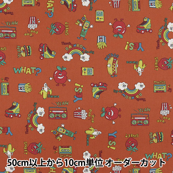 【数量5から】 生地 『オックス レトロポップ アメリカン柄 赤 YKA-81030-1B』 KOKKA コッカ
