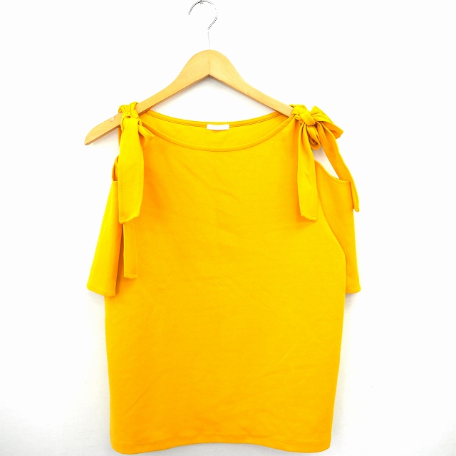 【中古】ジーユー GU シャツ ブラウス 無地 シンプル 丸首 肩だし 五分袖 L イエロー 黄 /MT39 レディース