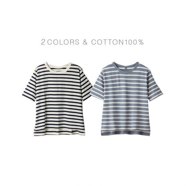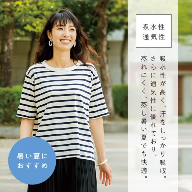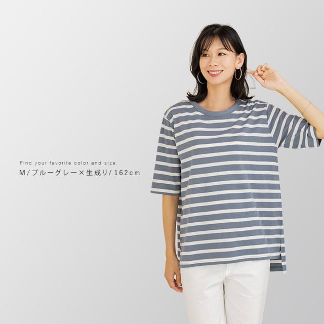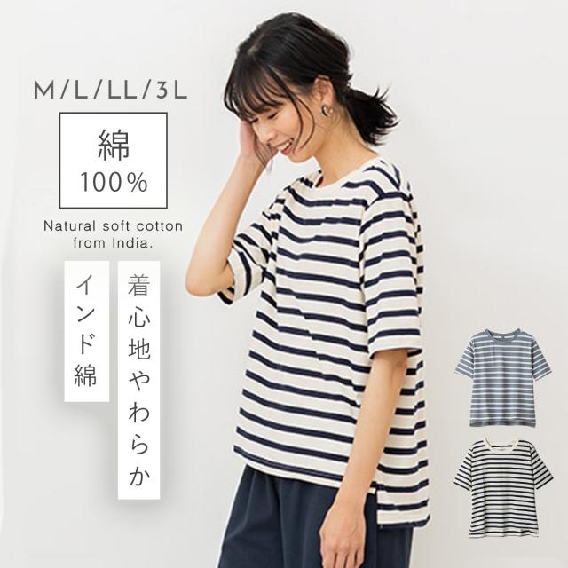 やわらかい 綿100%Tシャツ 5分袖Tシャツ 5分袖 シンプル ボーダー柄 丸首 クルーネック コットン インド綿 100% カットソー 定番 着回し サイズ展開 大きいサイズ レディース 男女兼用 LL 3L エコテックス 敏感肌 肌に優しい 丈長め 40代 50代 60代 70代 ナチュラル メ...