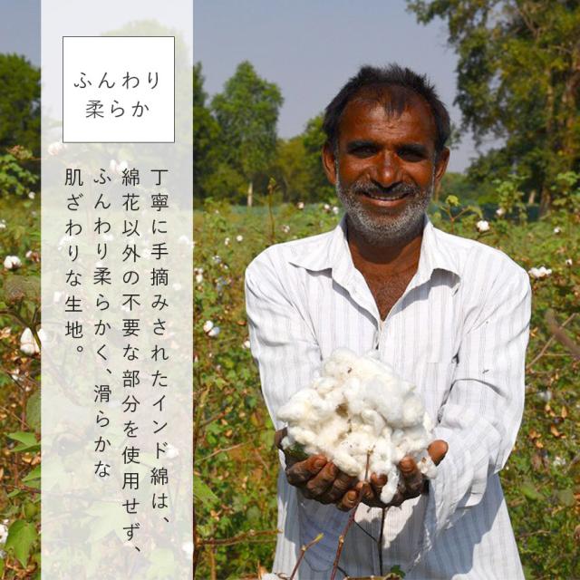 天然繊維のインド綿は、合成繊維と比べて肌への刺激が少なく、敏感肌の方にもおすすめです。