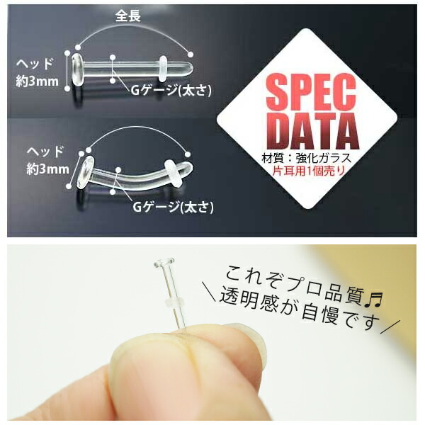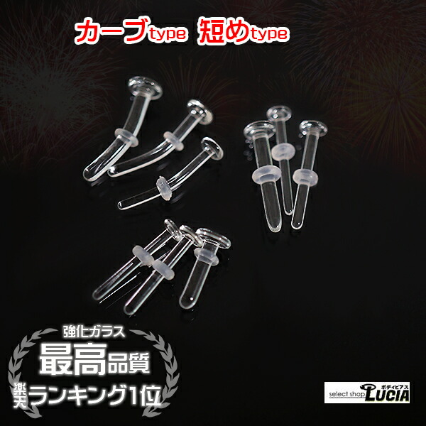本日P2倍 ランキング1位 強化 ガラス ピアス ボディピアス 透明ピアス ガラスリテーナー 18G 16G 14G 金属アレルギー対応 ファーストピアス 軟骨ピアス