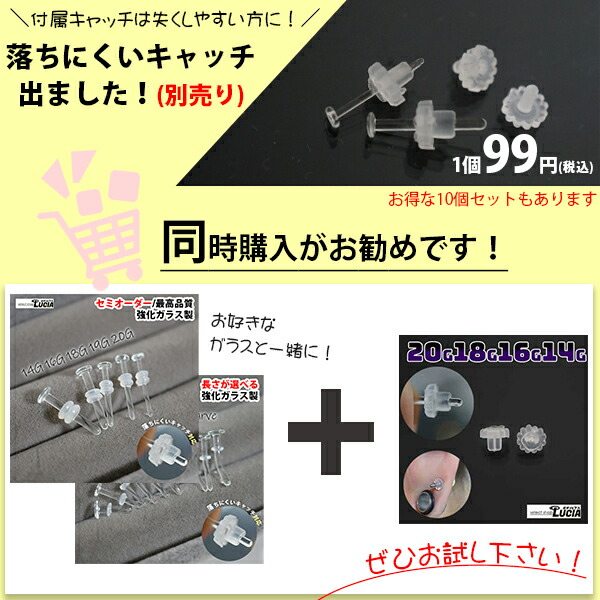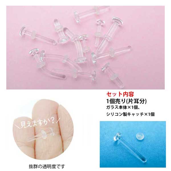 ピアスホールの維持に、使い心地の良いガラス製の透明ピアスです。