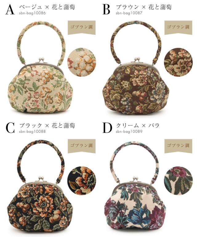 卒業式 バッグ 袴 成人式 単品 振袖用 卒業式 袴用 ベロア ゴブラン調 ベージュ 茶色 黒 薄黄色 グレー 葡萄 花唐草 薔薇 花柄 ハンドバッグ カジュアル 送料無料