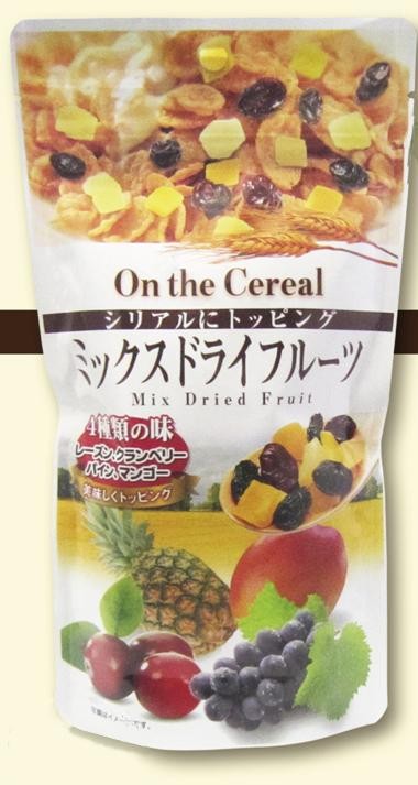 商品概要:4種類のドライフルーツをシリアルにトッピング!美味しさアップ!