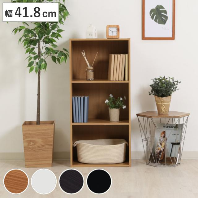 カラーボックス 幅41.8cm 3段 本棚 収納ラック ( ブックシェルフ シェルフ 収納 飾り棚 ディスプレイラック オープンシェルフ 収納棚 棚 シンプル ディスプレイ 木製 木目 ナチュラル ブラウン 茶色 黒 白 おしゃれ )
