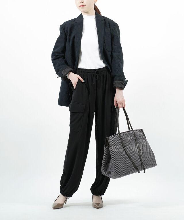 立体感のあるストライプ柄の生地は、スタイリッシュながら、女性らしく、
