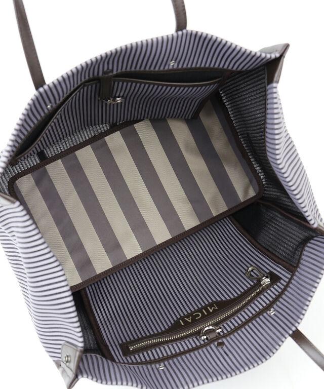 バッグを開けるとオリジナルストライプ柄生地の底板がチャームポイント♪