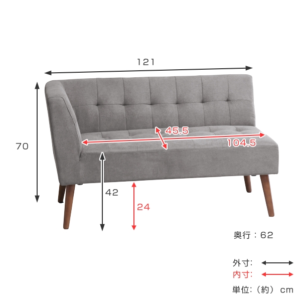 ソファ ミルド 幅121cm 右肘 2人掛け 木製 ファブリック ダイニング ソファー ひじ掛け 片肘 ( L字 コーナー カウチソファ リビング 単品 組合せ 自由 北欧 モダン ナチュラル 脚取り外し フロアソファ ローソファ コンパクト )