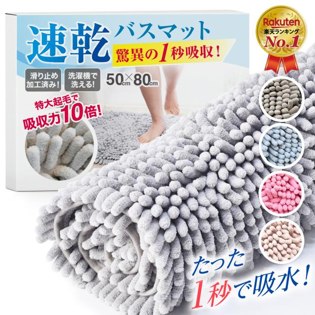 バスマット 速乾 大判 50x80cm マイクロファイバー 抗菌 丸洗い可 送料無料 【製品安全試験済み】風呂 浴室 足 ふき マット
