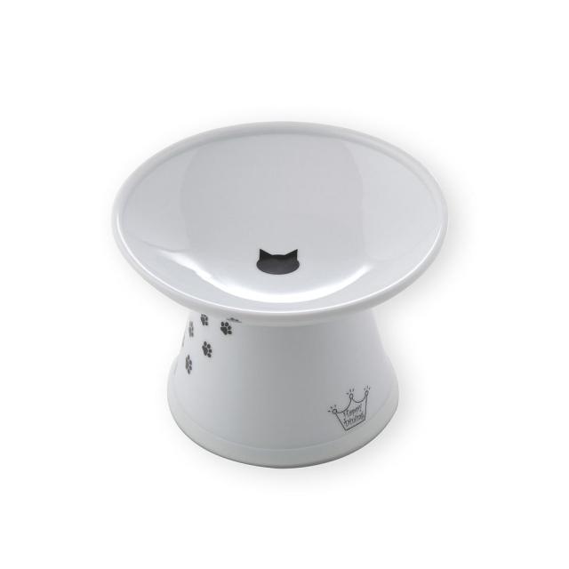 ・足付だから、頭と喉を下向きに下げた状態で食事をしなくて済みます。猫は比較的食道がまっすぐな動物のため、食道に留まった食事が戻りやすいのですが、高さのある食器で食べることによりフードの逆流を減らし、猫の負担が軽減されます(一気食いによる嘔吐を軽減)