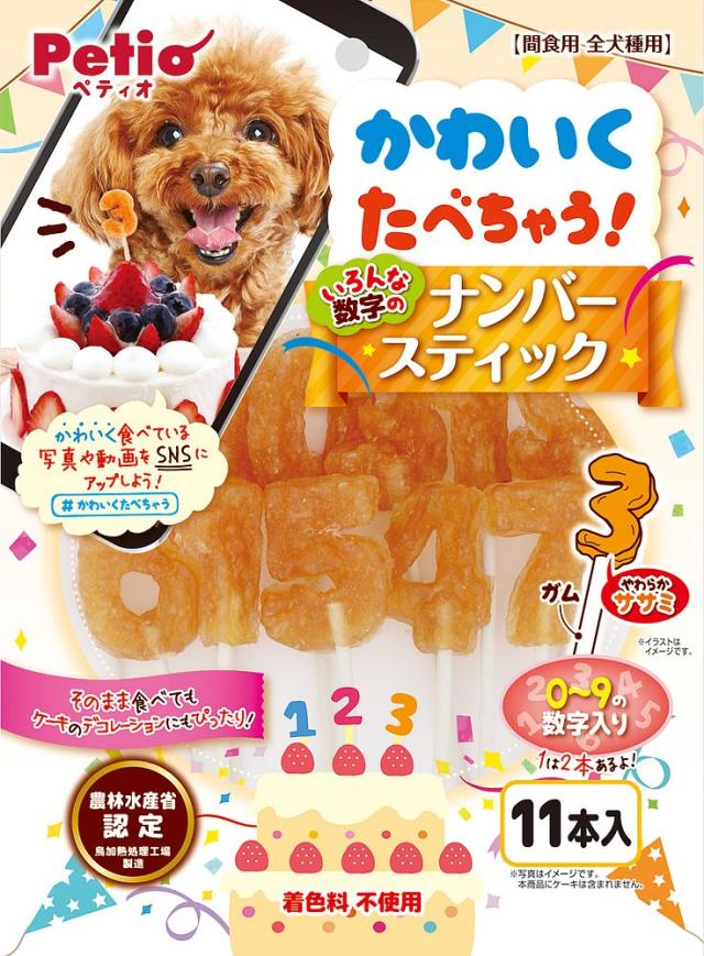 ササミとガムでできているから全部食べられてワンちゃん大満足!そのまま食べてもケーキのデコレーションにもぴったり!誕生日や記念日に使ってね!0〜9の数字入り。着色料不使用。