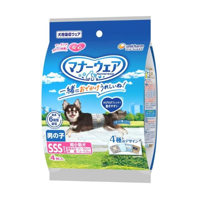 (まとめ買い)ユニ・チャーム マナーウェア 男の子用 SSSサイズ 4種のデザインパック 4枚 犬用 ペット用品 〔×10〕 【北海道・沖縄・離島配送不可】