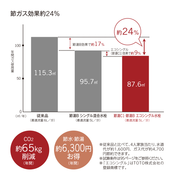 ・従来品と比べて、水道代・ガス代がお得に!