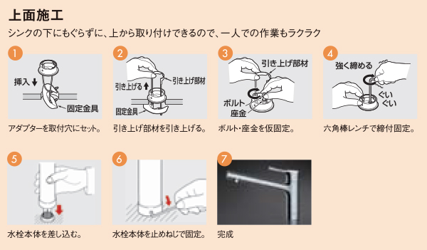 ・一人でも作業ラクラク!上から取り付けできる上面施工
