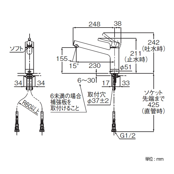 | 機能 | ・ソフト吐水 ・エコシングル ・メタルハンドル ・上面施工 |