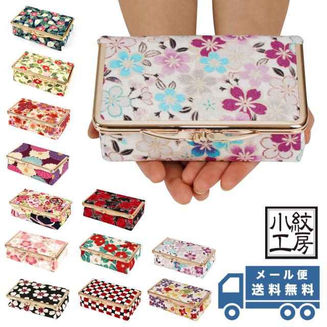 【メール便送料無料】コスメボックス コスメポーチ 鏡付き がまぐち がまぐちポーチ バニティポーチ 和KOMONO 小紋工房 二越ちりめん 縮緬 日本製 和柄 和小物 和雑貨 メイドインジャパン 国産 レディース