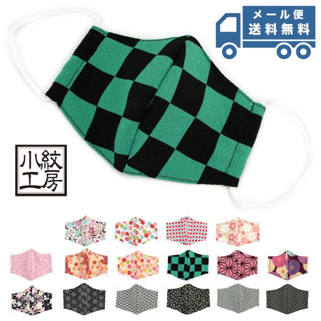 マスク 洗えるマスク 二越ちりめん 縮緬 和KOMONO 小紋工房 日本製 和柄 和小物 和雑貨 市松 麻の葉 メイドインジャパン 国産 メール便送料無料 花柄 桜 梅 菊 ホワイト 白 ピンク ブラック 黒 SALE