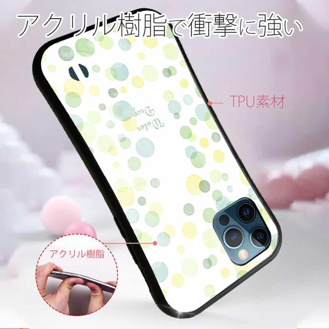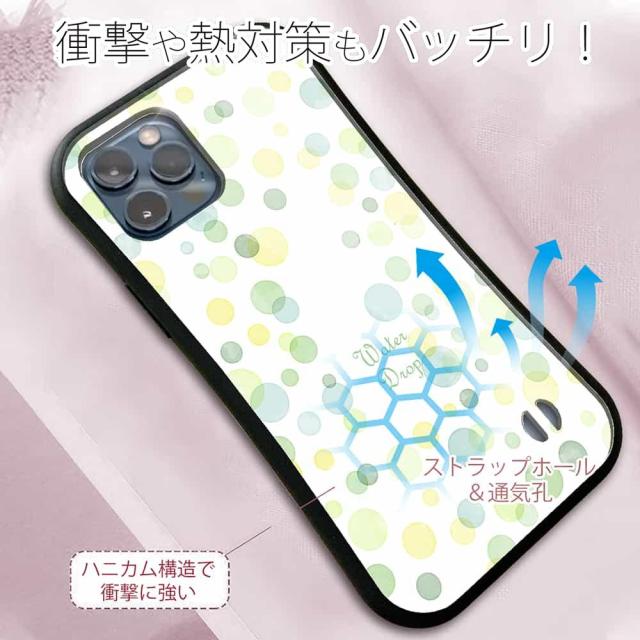| 商品説明 | 落下や衝撃に強いTPUケース+綺麗に印刷できるアクリル板でプリント。水玉(ウォータードロップ)のグリーンバージョン! |