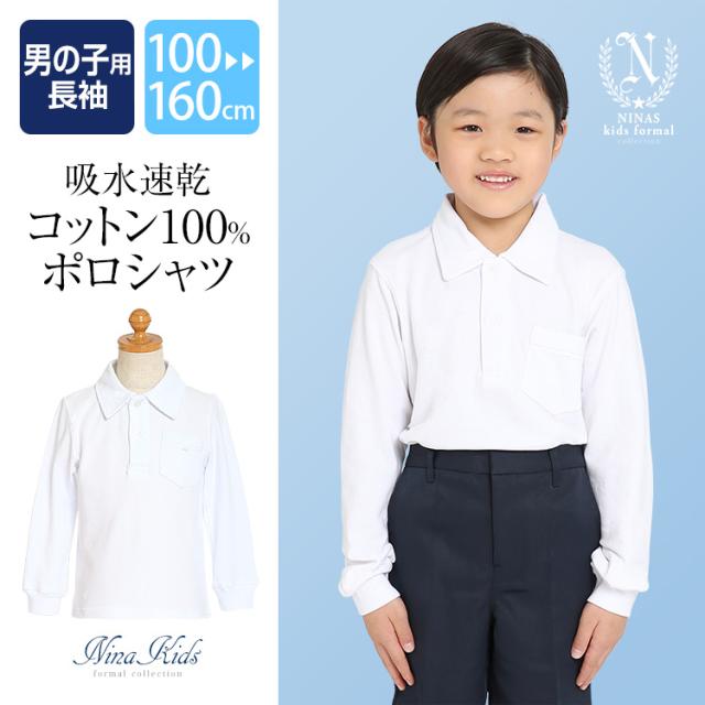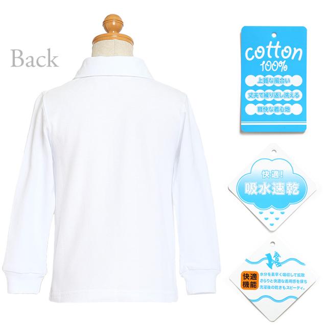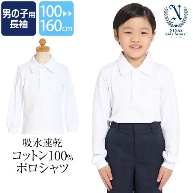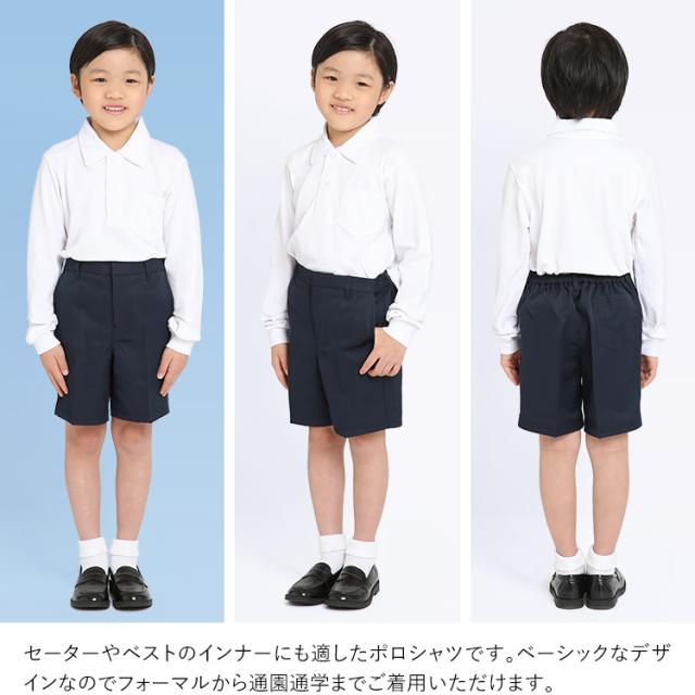 ポロシャツ 長袖 男の子 学生服 白 洗える 綿100% コットン 無地 ホワイト 制服 スクール 子ども 子供 子供用 男子 男児 お受験 面接 説明会 行動観察 キッズ 幼稚園 小学校 中学校 小学生 中学生 通園 通学 100 110 120 130 140 150 160 cm SCH-PO10400 ゆうパケット対応
