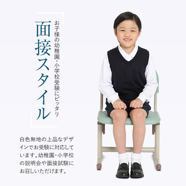 ・白色無地の上品なデザインでお受験に対応しています。幼稚園・小学校の説明会や面接試験にお召しいただけます。