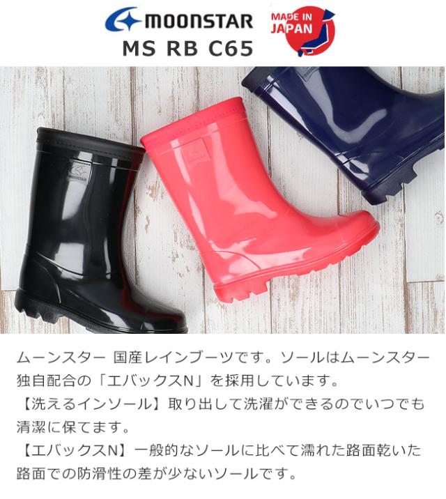 ムーンスター レイン ブーツ キッズ 長靴 黒 日本製 防水 防滑 柔らかい 痛くない 2E RB C65 通園 通学 子供靴 シューズ 靴