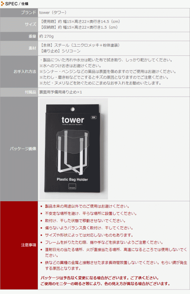 ポリ袋エコホルダー Lサイズ キッチン収納 ゴミ箱 ゴミ入れ グラススタンド tower タワー