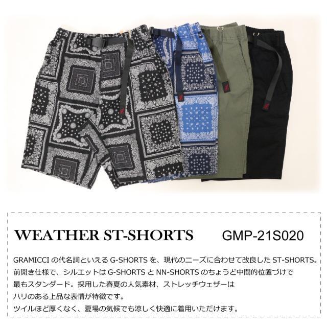 SALE Gramicci グラミチ ショートパンツ ウェザー ST-SHORTS GMP-21S020 夏 快適 ストレッチウェザー メンズ バンダナ柄 無地