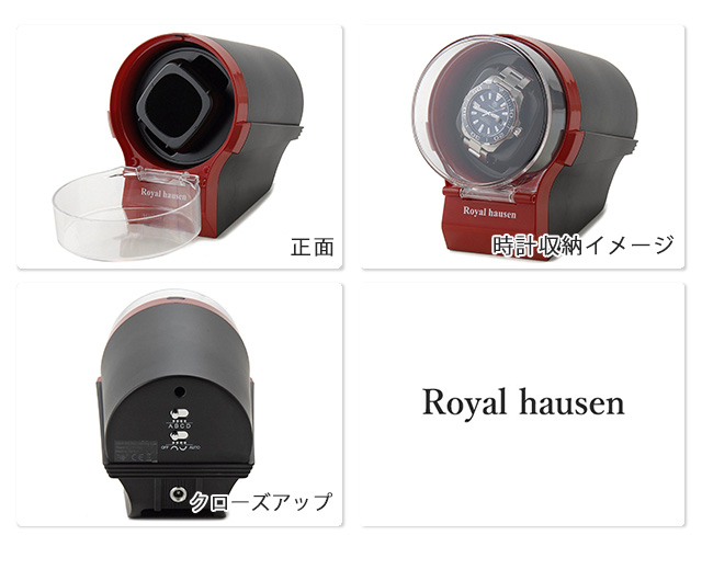 正規品 ロイヤルハウゼン ワインダー ワインディングマシーン ワインディングマシン 1本巻き上げ マブチ製モーター 時計ケース SR097RD Royal hausen レッド ◆ラグジュアリーな雰囲気を醸し出す、Royalhausen(ロイヤルハウゼン)の高級感溢れるウォッチワインダー。着用しない期間が長ければ長いほどムーブメントの動きが停止してしまう自動巻き腕時計を、最適な振動サイクルでベストな状態に保ちます。モーターは高品質なマブチモーターを使用していますので、安心してご使用いただけます。ACアダプター電源を採用しているので、長時間のご使用や繰り返しのご使用でもバッテリー切れの心配がなく、安心してお使い頂けます。また、コンパクトなサイズで、インテリアとしてもお部屋に置いていただけます。 ※画像の時計は付属いたしません。