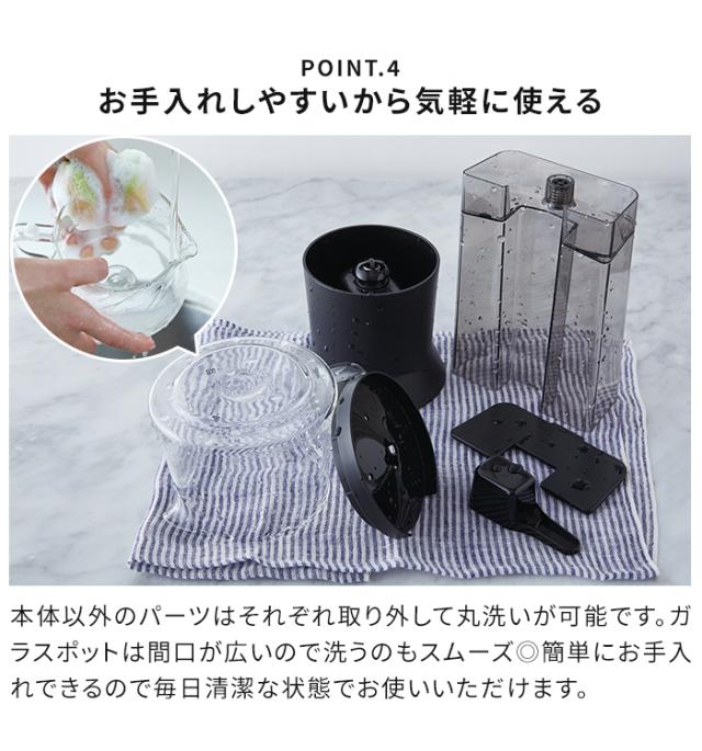 | 材質 | 本体:ポリプロピレン、AS樹脂 ガラスポット:ガラス |