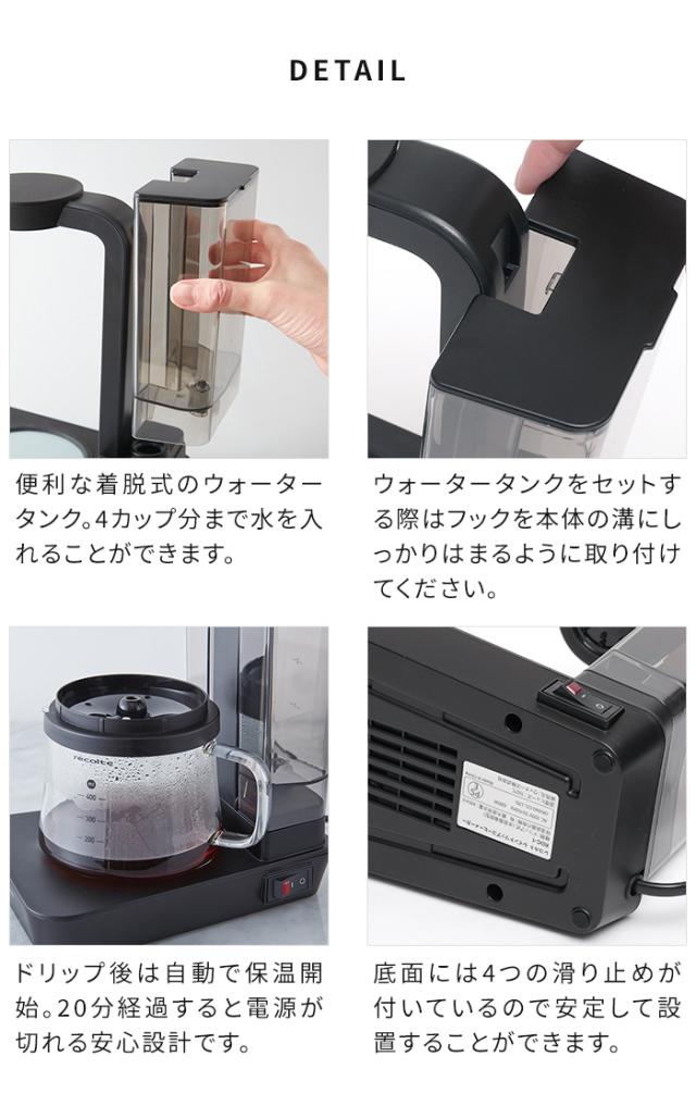 【特典付】 コーヒーメーカー おしゃれ レコルト recolte レインドリップコーヒーメーカー RDC-1 一人用 自動 コーヒーマシン ドリッパー
