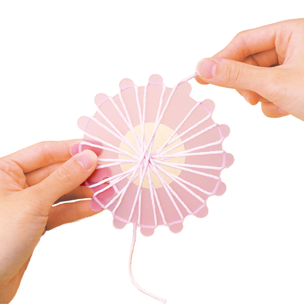 カードの山に糸を掛けてゆくだけで、