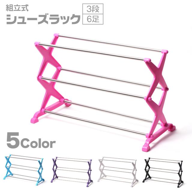商品名 シューズラック 3段 選べる 5色 靴 収納棚 ラック 省スペース 組立式 スリム