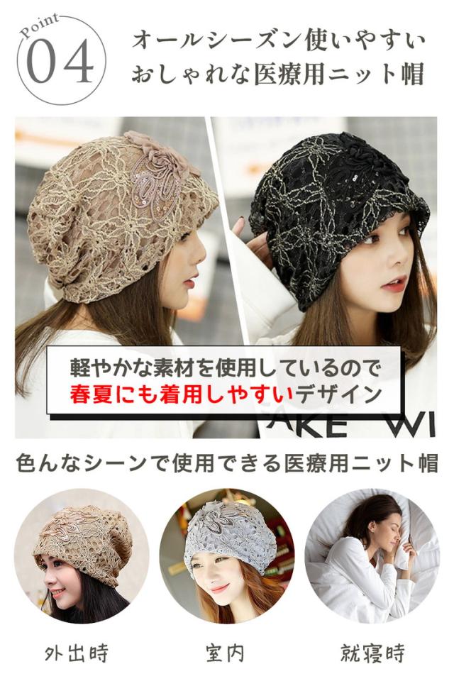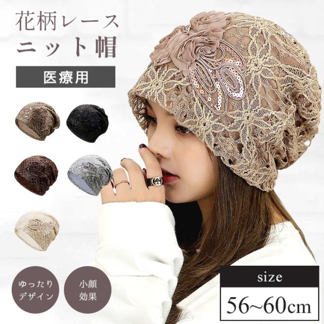 ニット帽 春夏 レディース 薄手 夏用 花柄 レース 抗がん剤 帽子 医療用 医療用帽子 就寝用 ニットキャップ 可愛い かわいい おしゃれ 女性用 ケア帽子 女性 ゆったり ニットキャップ ニット帽子