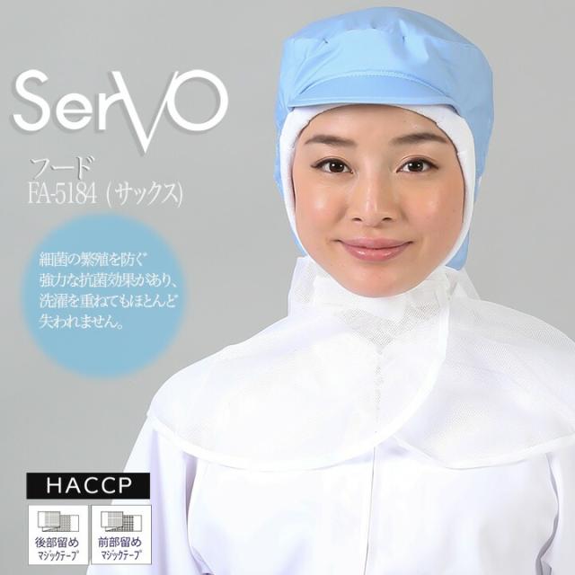 衛生帽子 サーヴォ FA5184 食品工場帽子 サックス 男女兼用 ケープ付き HACCP ハサップ 工場白衣 フード 調理 梱包 検品 サービス業 制服 レストラン 抗菌 防臭 制電 ユニフォーム sarvo【メール便送料無料】