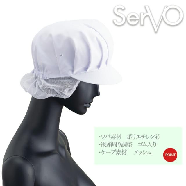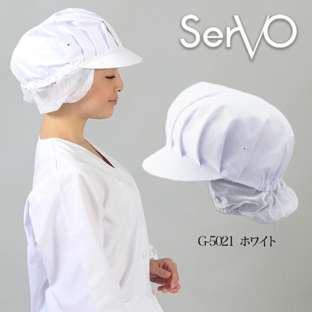 衛生帽子 サーヴォ G-5021 食品工場帽子 ホワイト 男女兼用 メッシュケープ付 工場白衣 調理 梱包 検品 サービス業 制服 レストラン ユニフォーム sarvo【メール便送料無料】