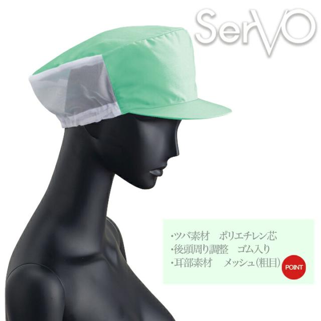 衛生帽子 サーヴォ US2658 食品工場帽子 グリーン 男女兼用 抗菌 防臭 制電 吸汗速乾 メッシュケープ付 工場白衣 調理 梱包 検品 サービス業 制服 レストラン ユニフォーム sarvo【メール便送料無料】